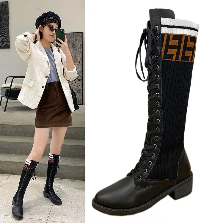 Product Name: Tongxi mujer elástico estiramiento botas altas deslizamiento sobre la rodilla botas moda femenina Otoño Invierno mujer Zapatos negro