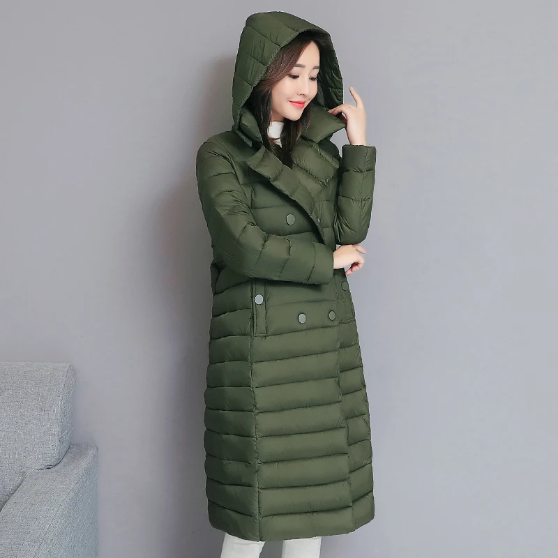 Product Name: 2019 chaqueta de invierno con cuello vuelto para mujer, con botones acolchados, Parka larga, prendas de vestir, abrigo cálido