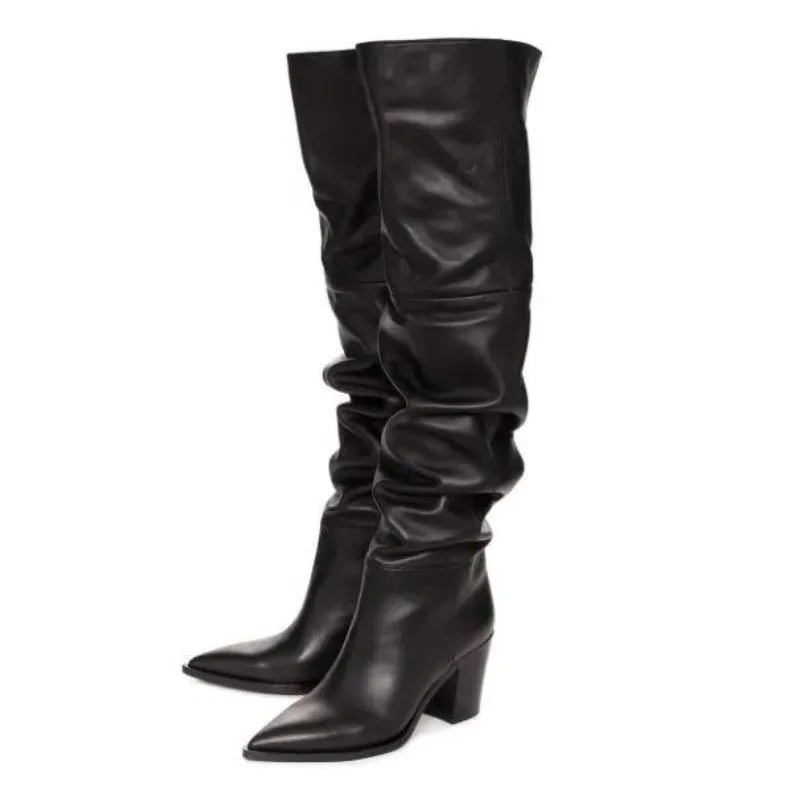 Product Name: Rizzina tamaño 36 43 botas de cuero Real sobre la rodilla marca de moda Sexy zapatos de tacón alto de Invierno para mujer calzado de fiesta callejero