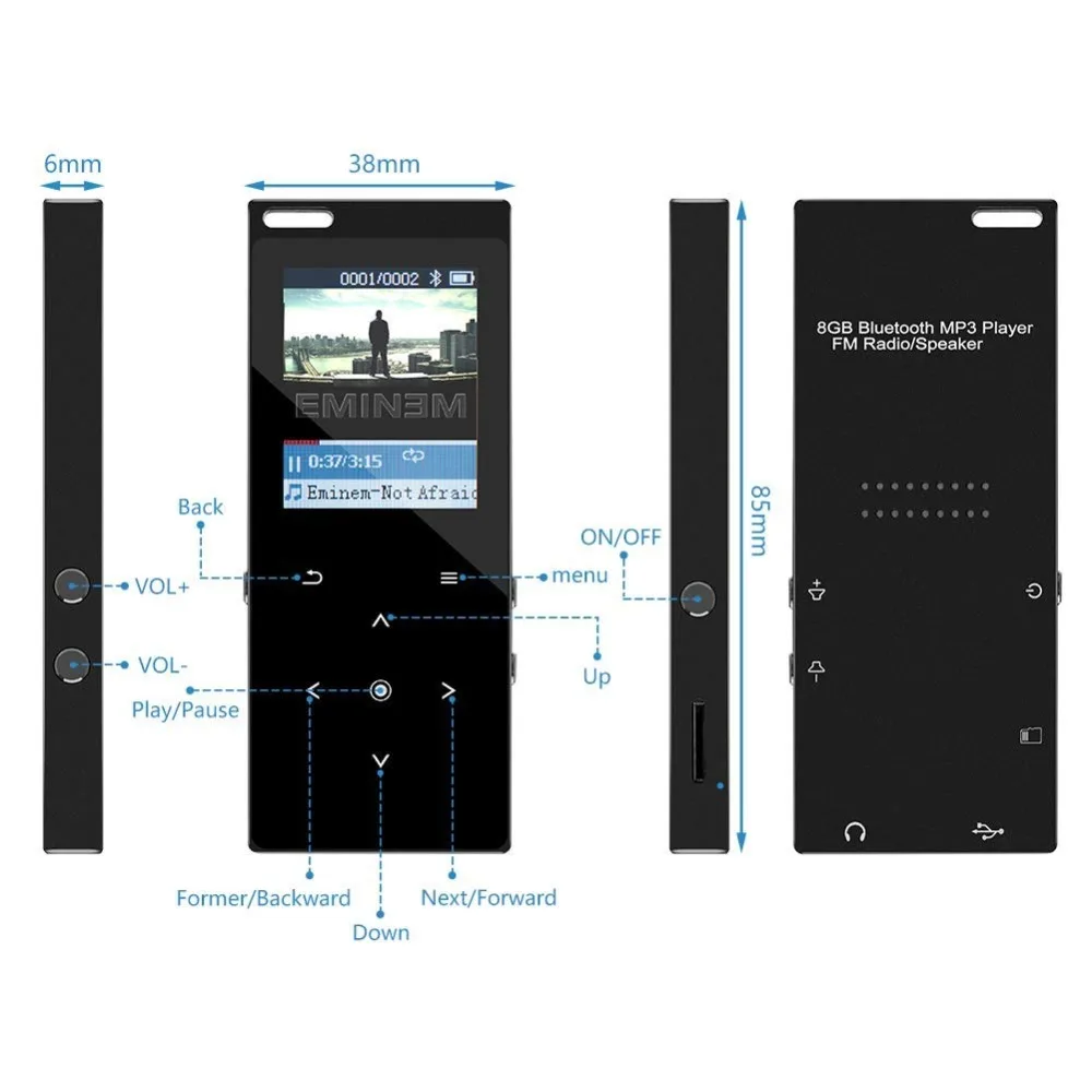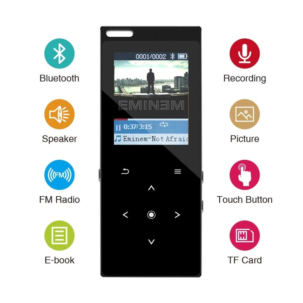 Product Name: Altavoz MP3 pantalla táctil reproductor de MP3 con Bluetooth4.0 estudiante walderman Pantalla de canción de escucha ultradelgada letras reproductor de MP3 hebreo