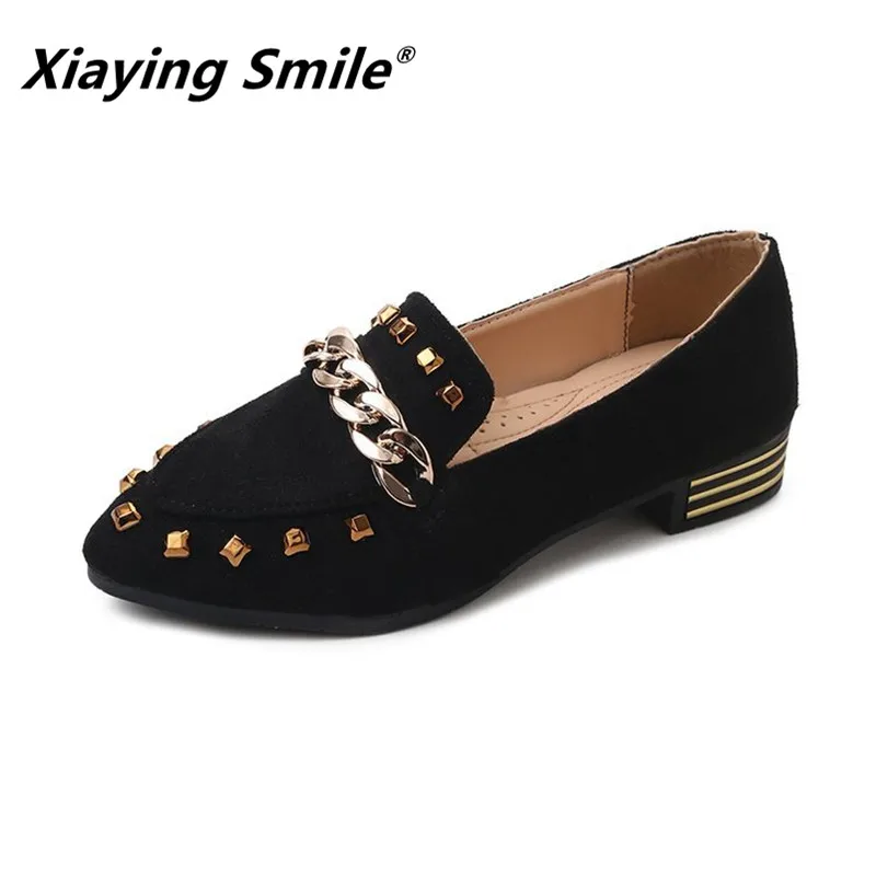 Special Offer Xiaying sonrisa bombas de mujer nuevos zapatos casuales de moda Primavera otoño femenino conciso estilo maduro decoración de Metal bombas zapatos Discount 0% Today!