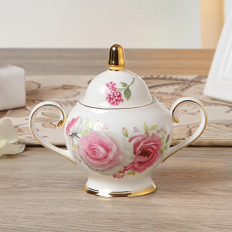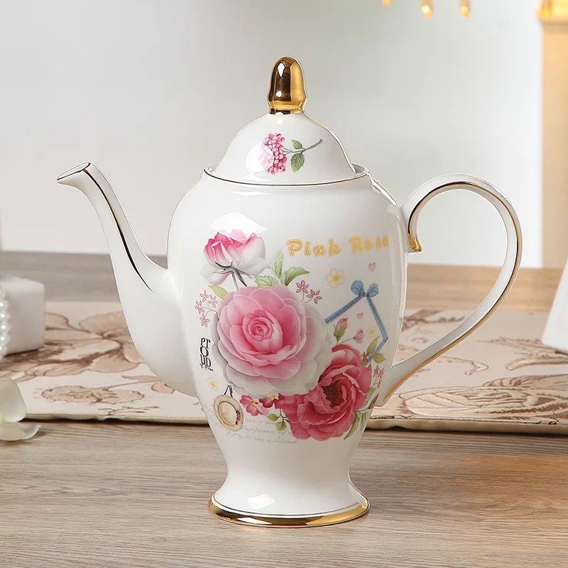 Product Name: Juego de té de porcelana británica con hueso de Rosa romántico, juego de té de porcelana europea, olla de cerámica, crema, tazón de azúcar, tetera, taza de café