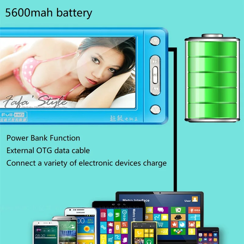 Product Name: Pantalla táctil HD reproductor MP4 8gb 5600mah banco de energía Build in altavoz 5 pulgadas MP4 música TV Out MP5 reproductor de vídeo con 30 idiomas