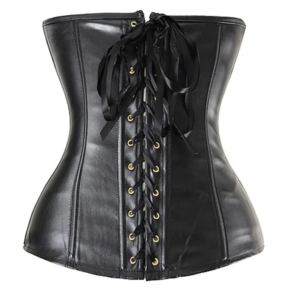 Product Name: Corsés de imitación de cuero negro para mujer y Bustiers gótico Steampunk de encaje Overbust Shapewear corsé Sexy Lencería talla grande