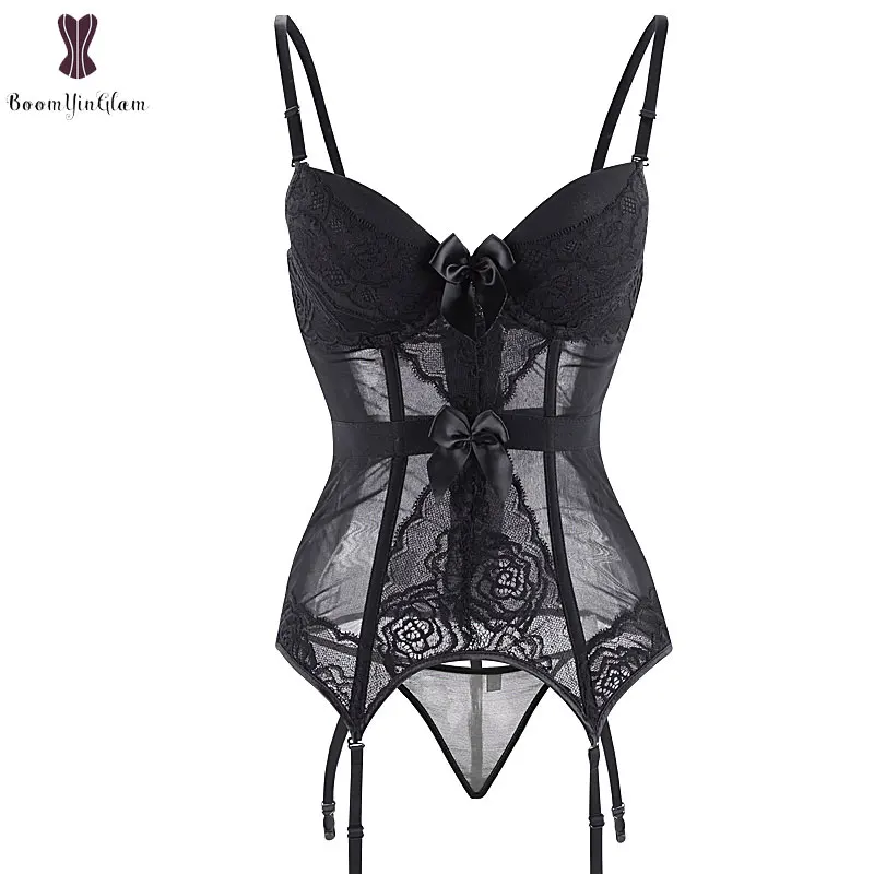 Special Offer Sujetador acolchado Lencería corsé Sexy ropa de noche de mujeres cintura recortadora encaje transparente elástico deshuesado cintura adelgazamiento ropa interior Bustiers Discount 7% Today!