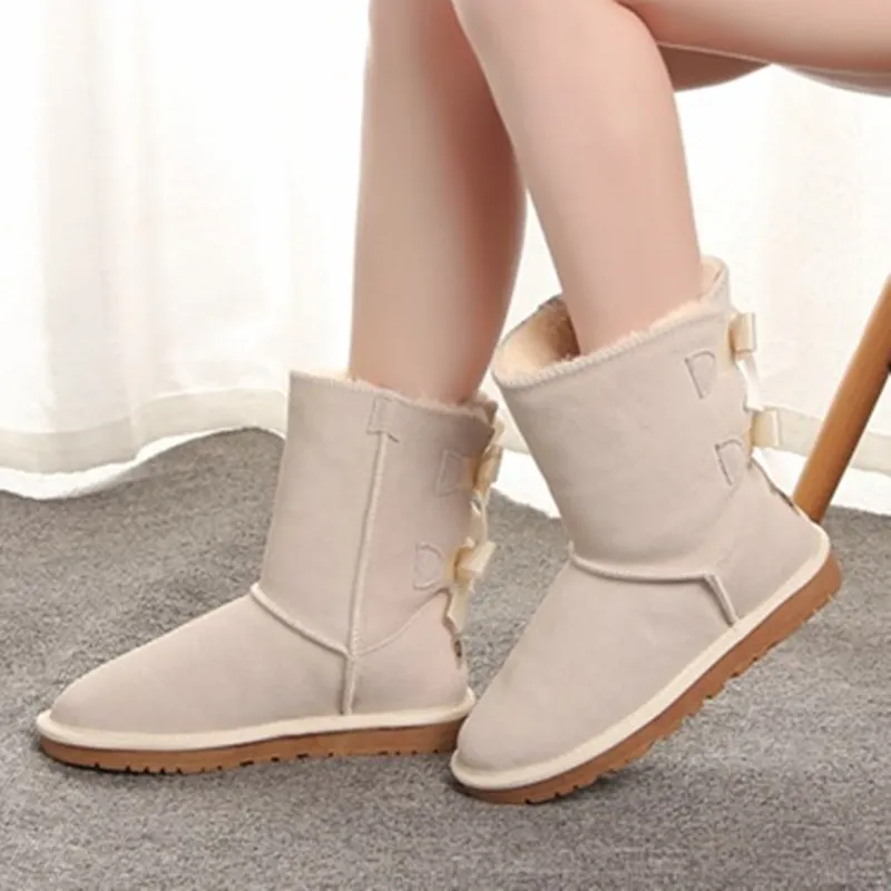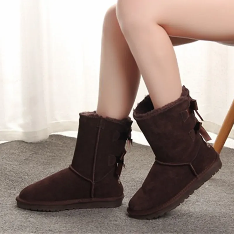 Special Offer Botas de nieve para mujer de estilo australiano 2 Bow Back invierno botas de cuero marca de la marca de tamaño IV us 4 13 envío gratis Discount 0% Today!