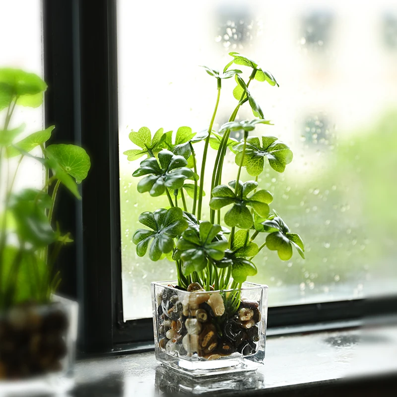 Special Offer Plantas artificiales Erxiaobao con maceta de vidrio bonsái de simulación en maceta con trébol de cuatro hojas verde decoración de las ventanas de la Mesa del hogar Discount 0% Today!