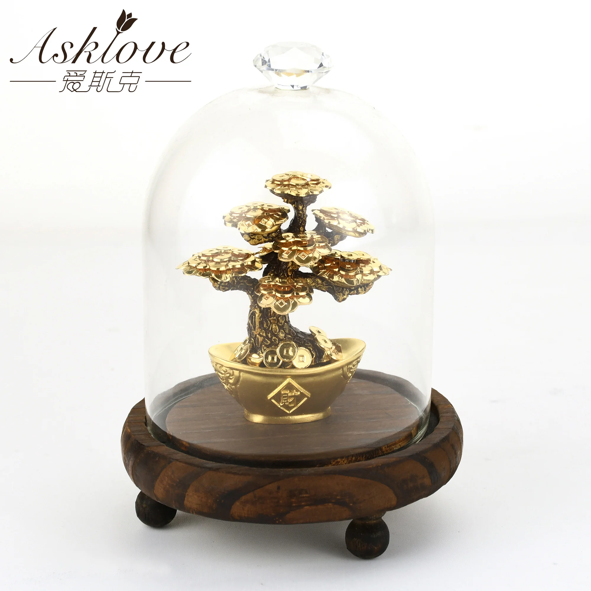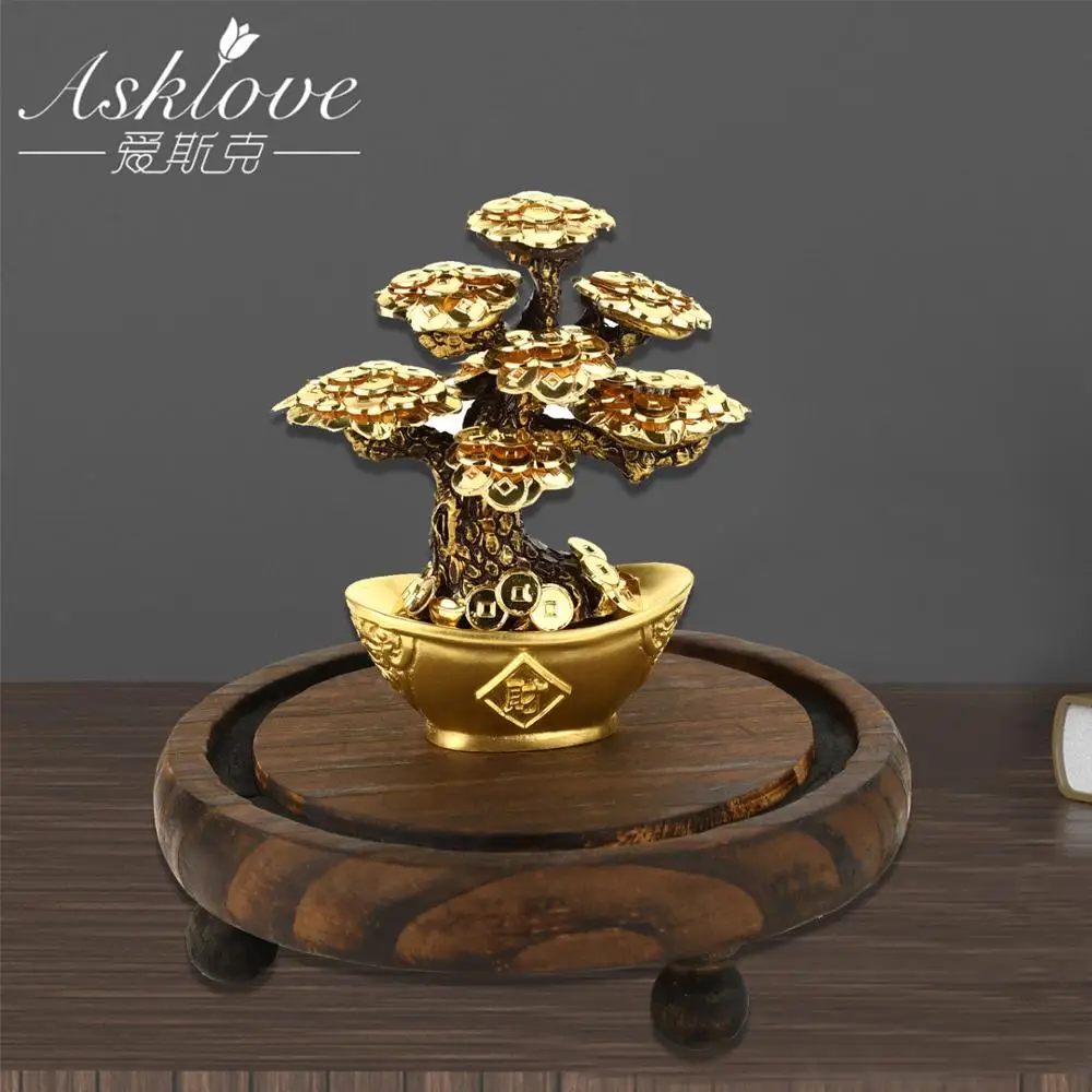 Product Name: Mesa de la Oficina del Bonsai de la hoja de oro del árbol de la fortuna feng shui adornos de La Fortuna regalos decoración del hogar con caja de regalos