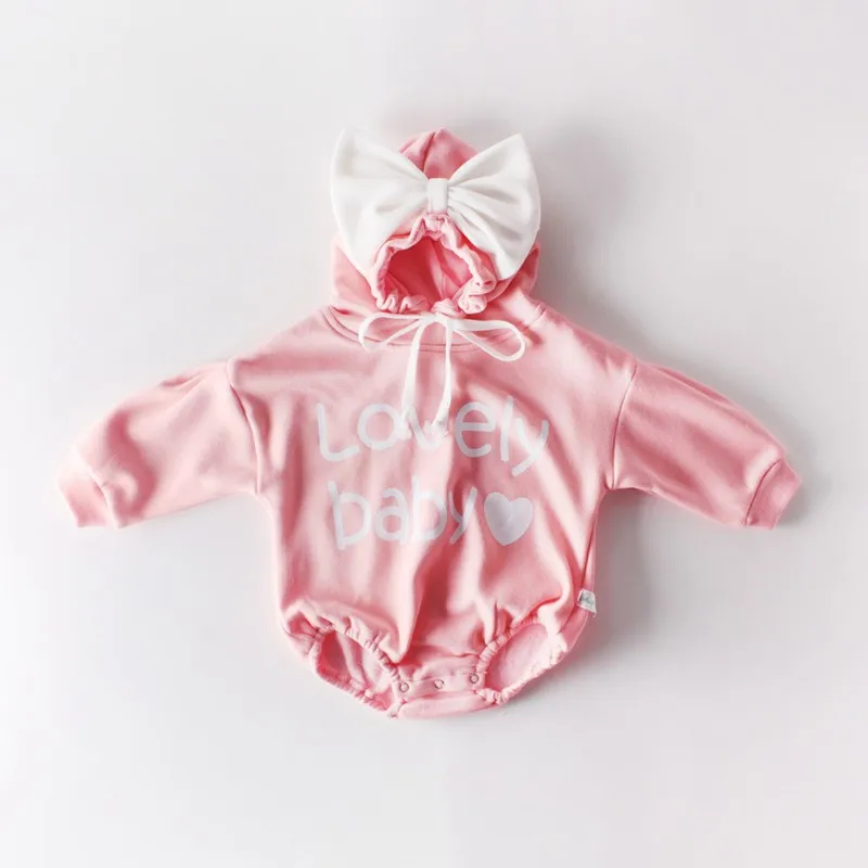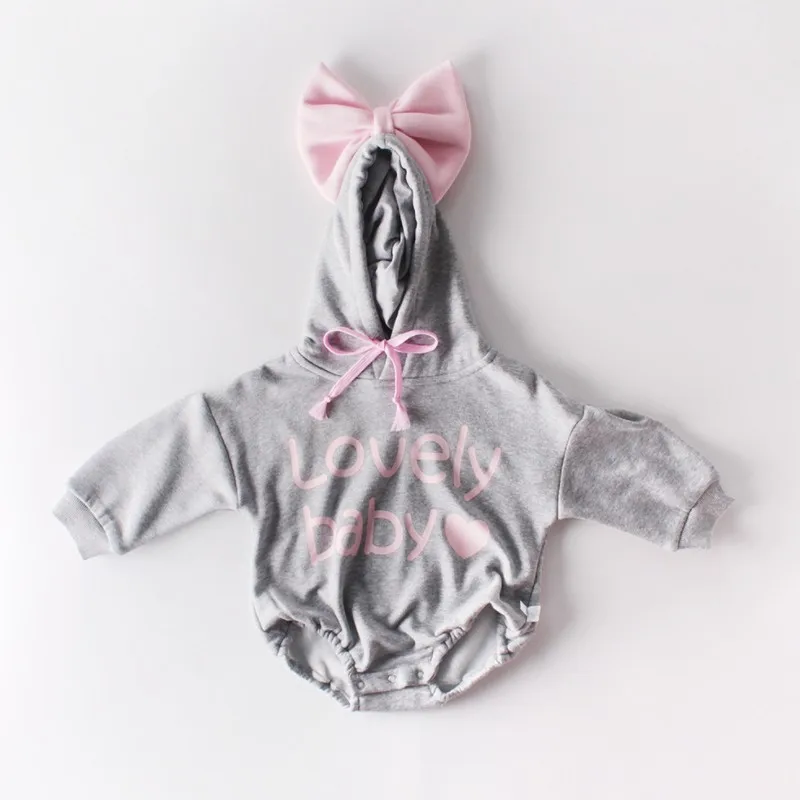 Product Name: 2019 otoño mameluco para bebé niña bebé estampado de letras de algodón de manga larga mameluco con capucha para Recién Nacido trajes de mono