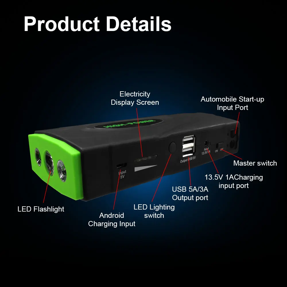 Product Name: Cargador de batería para coche, cargador de batería de coche, batería de arranque de alta capacidad, arrancador de coche portátil 600A, 12 V, 16800 mAh