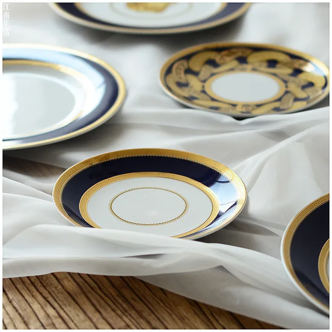Product Name: Juego de vajilla China para retrato de hombre viejo azul de lujo, juego de vajilla de porcelana, plato occidental, decoración del hogar, regalos de boda