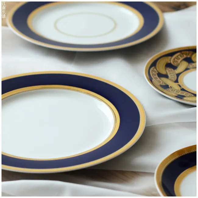 Special Offer Juego de vajilla China para retrato de hombre viejo azul de lujo, juego de vajilla de porcelana, plato occidental, decoración del hogar, regalos de boda Discount 39% Today!