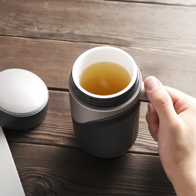 Product Name: Taza Termo de 380ml taza café de cerámica taza de aislamiento de oficina botella de agua con tapa de la manija frasco de vacío vaso de viaje para hombres