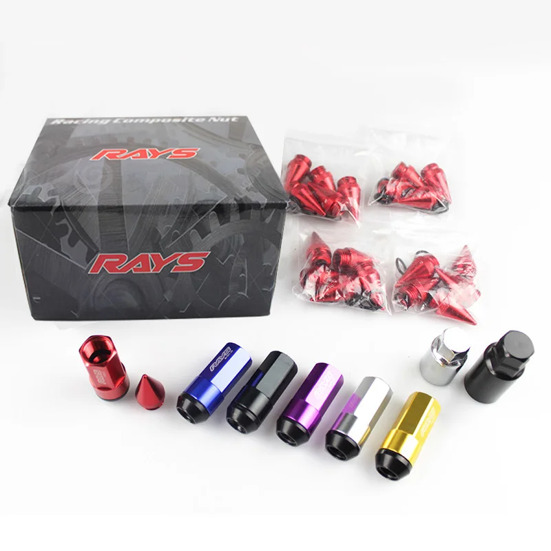 Product Name: Nuevo diseño VOLKS RAYS Racing tuerca compuesta antirrobo Cabeza de Acero aleación de aluminio bloqueo rueda tuerca perno con picos RS LN038