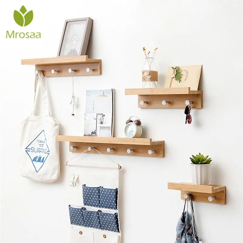 Special Offer Soporte de pared decorativo de madera estante de pared soporte de almacenamiento de artículos varios colgador de Prateleira organizador de llaves bandeja para pared de madera con ganchos Discount 30% Today!