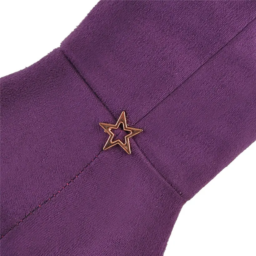 Product Name: Botas hasta la rodilla para mujer de invierno negro púrpura bandada verde cuadrado Bloque Dorado tacones Casual Oficina señoras estrella cremallera de peluche largo botas