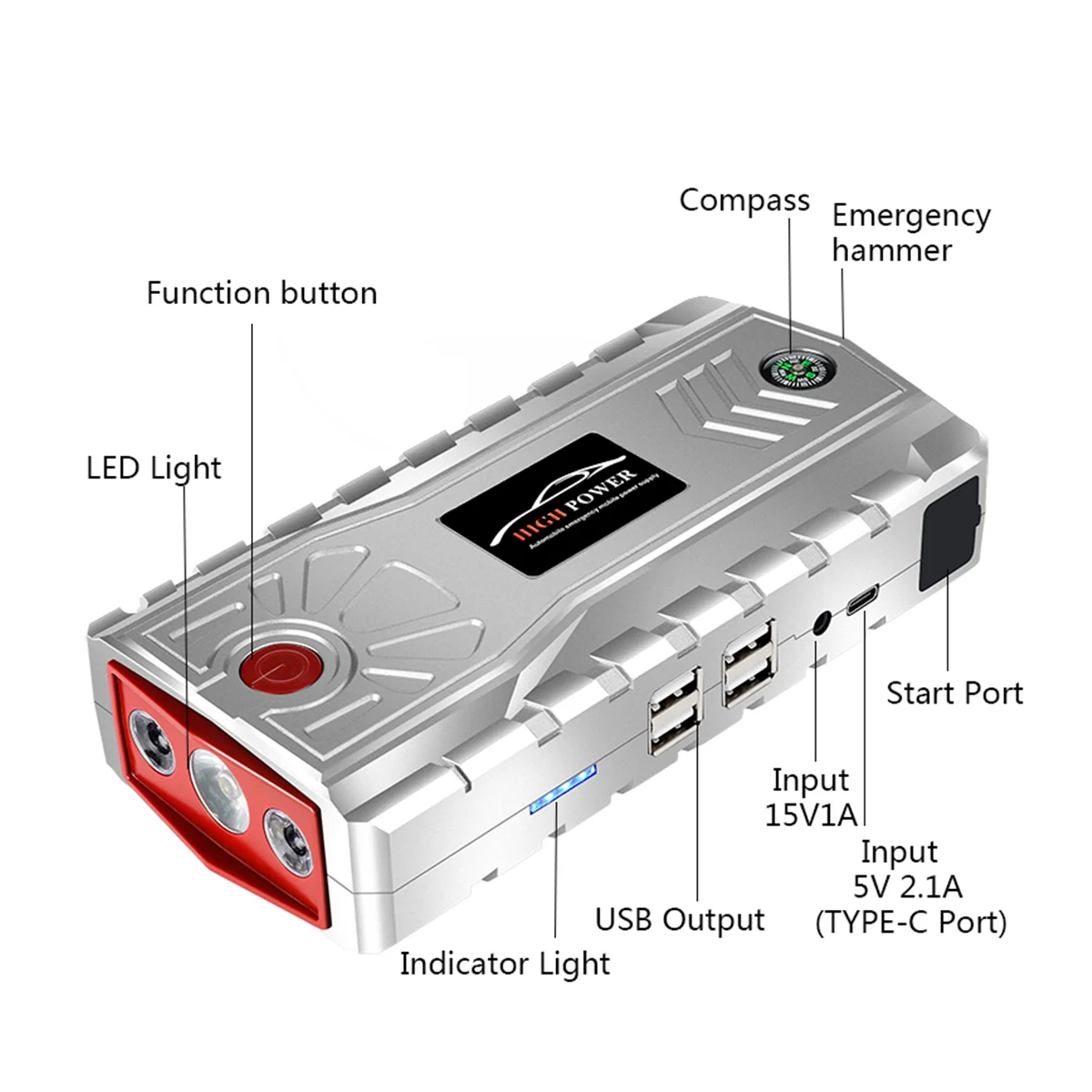 Product Name: 95600mAh Car Jump Starter Power Bank 800A cargador portátil de batería de coche 4USB 12V dispositivo de arranque gasolina Diesel tipo C