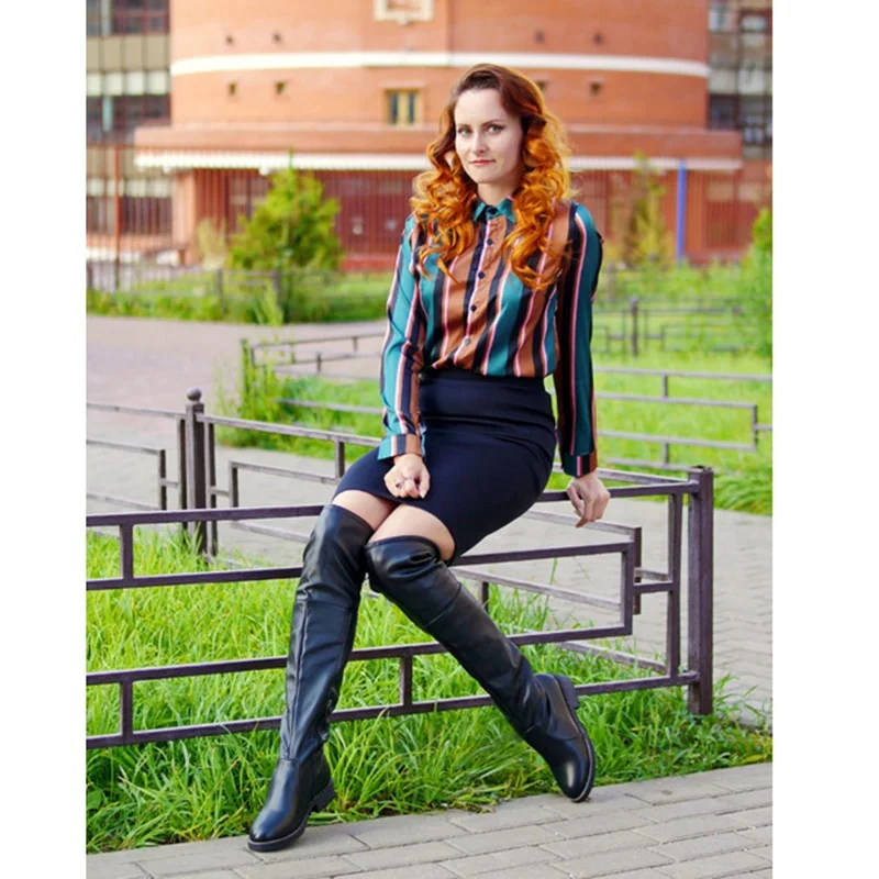 Special Offer RIZABINA de talla grande 34 43 2020 nuevas botas planas para mujer sobre la rodilla botas de invierno calientes hasta la rodilla Sexy zapatos con cremallera calzado Discount 49% Today!