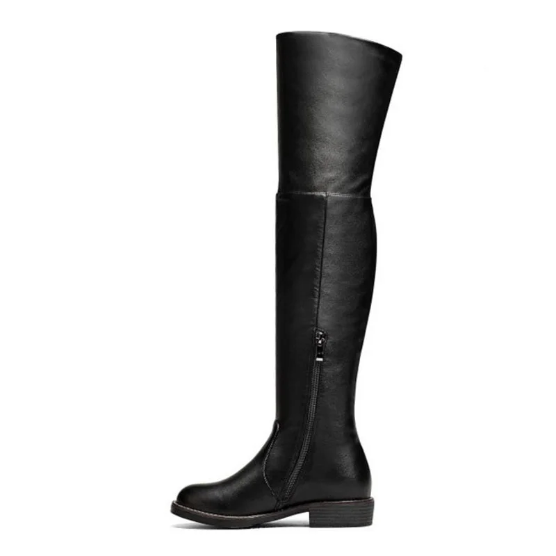 Product Name: RIZABINA de talla grande 34 43 2020 nuevas botas planas para mujer sobre la rodilla botas de invierno calientes hasta la rodilla Sexy zapatos con cremallera calzado