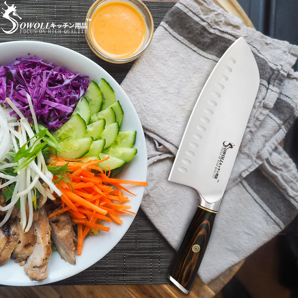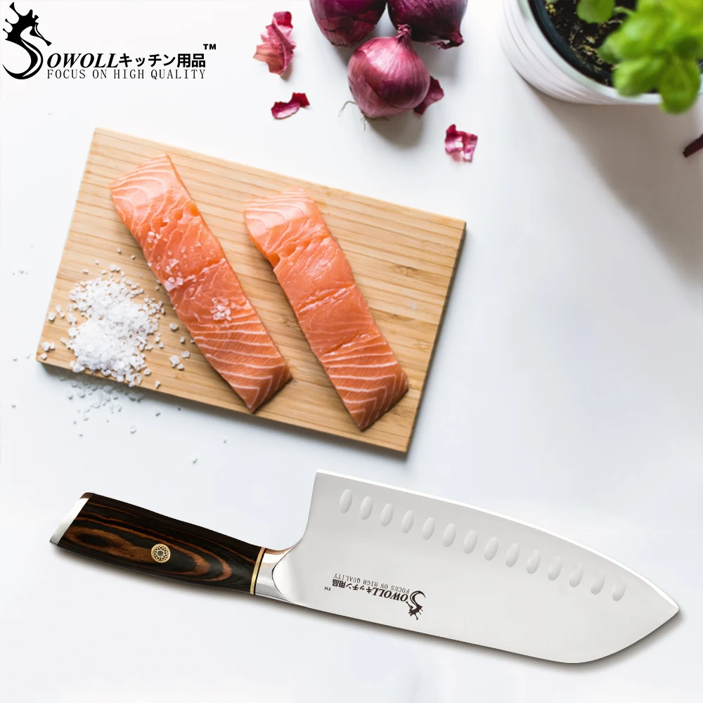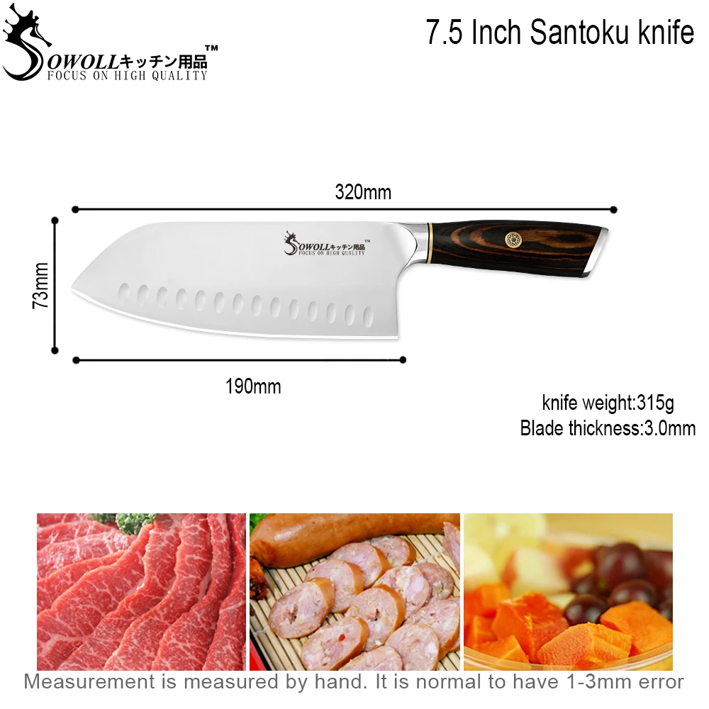 Product Name: Sowoll 7,5 pulgadas cuchillo de cocina de acero inoxidable mango de madera de Color cuchillo Santoku hueso carne pescado herramienta de cocina