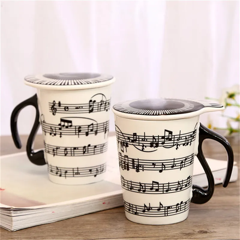 Special Offer 2017 Nuevo creativo taza de café de cerámica con tapa música notas piano llaves Musical de agua taza de leche 270ml Discount 1% Today!