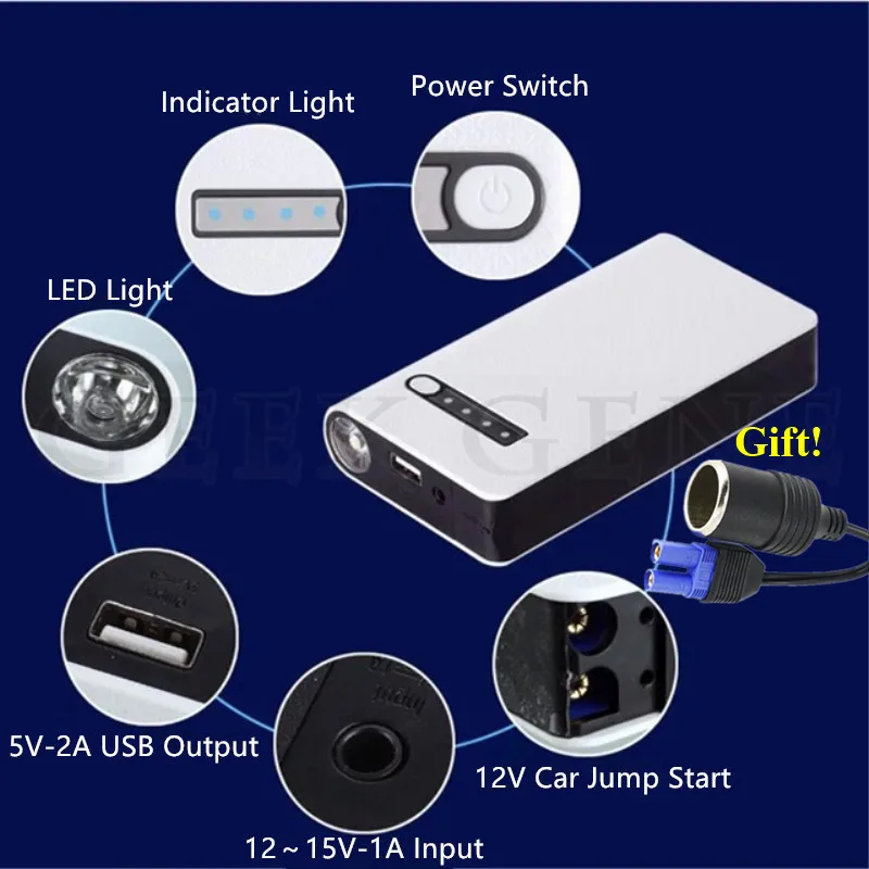 Product Name: GKFLY arrancador de coche 12V cargador de coche portátil Multi función arranque Jumper emergencia coche batería Booster dispositivo de inicio