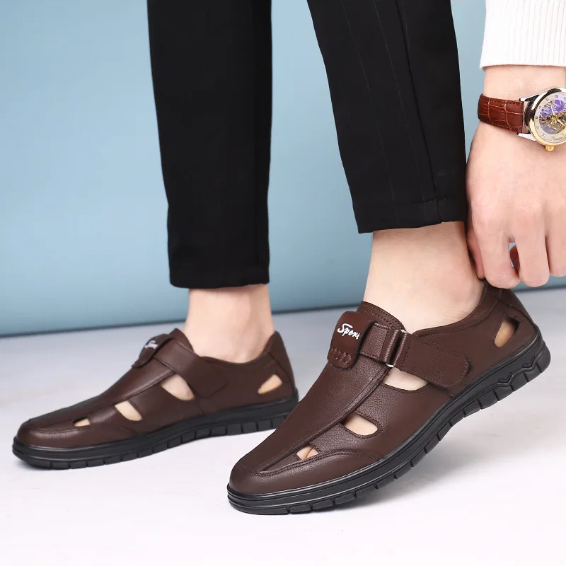 Product Name: Zapatos de cuero genuino para hombre 2020 sandalias de verano para hombre zapatos de cuero negro para hombre sandalias de playa KA1124