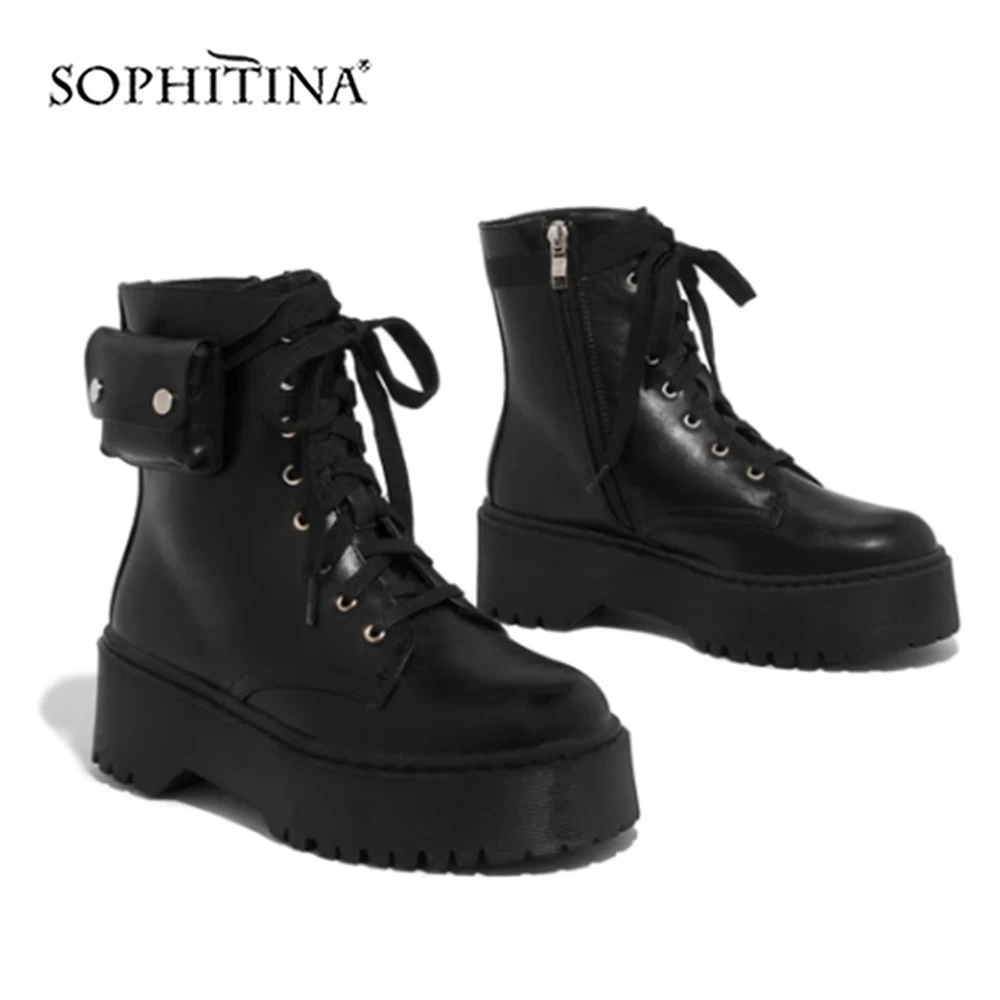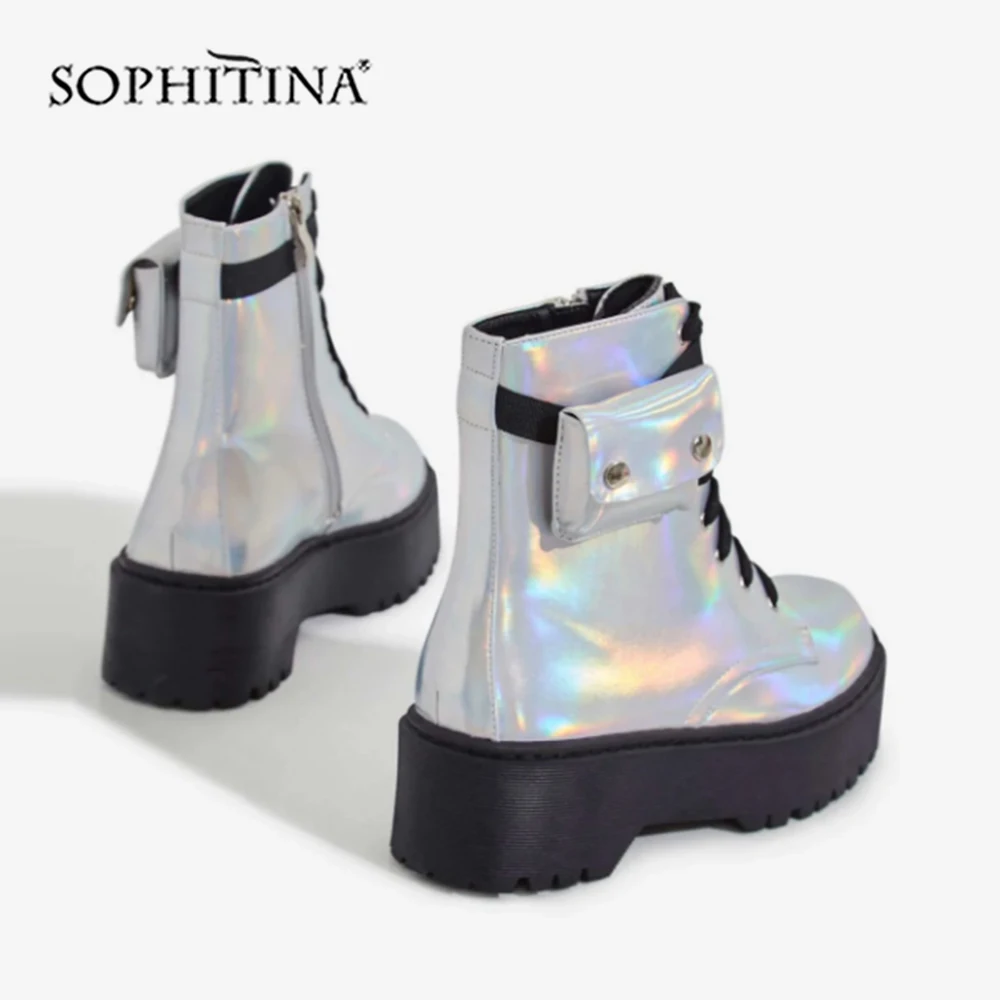 Product Name: SOPHITINA Martin botas de alta calidad hecho a mano Sexy plata moda mujer Zapatos de tacón grueso punta redonda con cremallera plataforma tobillo botas H6