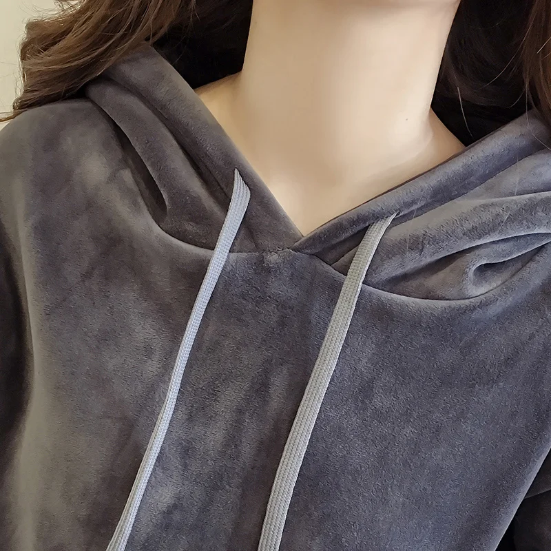 Product Name: Chándal de terciopelo de primavera conjunto de dos piezas Sexy con capucha gris de manga larga y pantalones mono chándal mujer moda negro XXXL