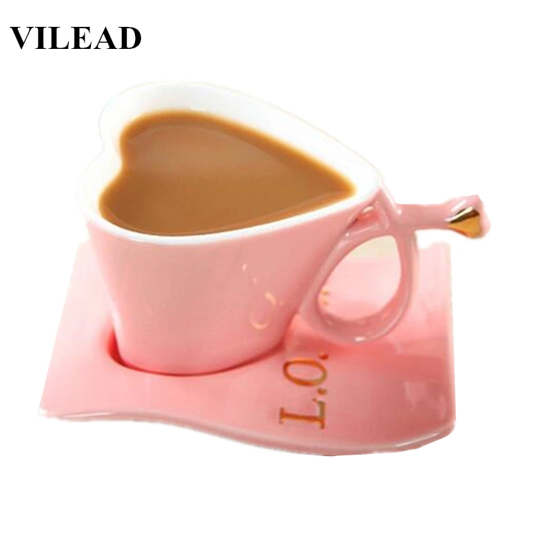 Special Offer VILEAD en forma de corazón amante taza de café de cerámica de moda leche taza con placa par mañana taza de té Oficina taza de agua regalo para niñas Discount 45% Today!