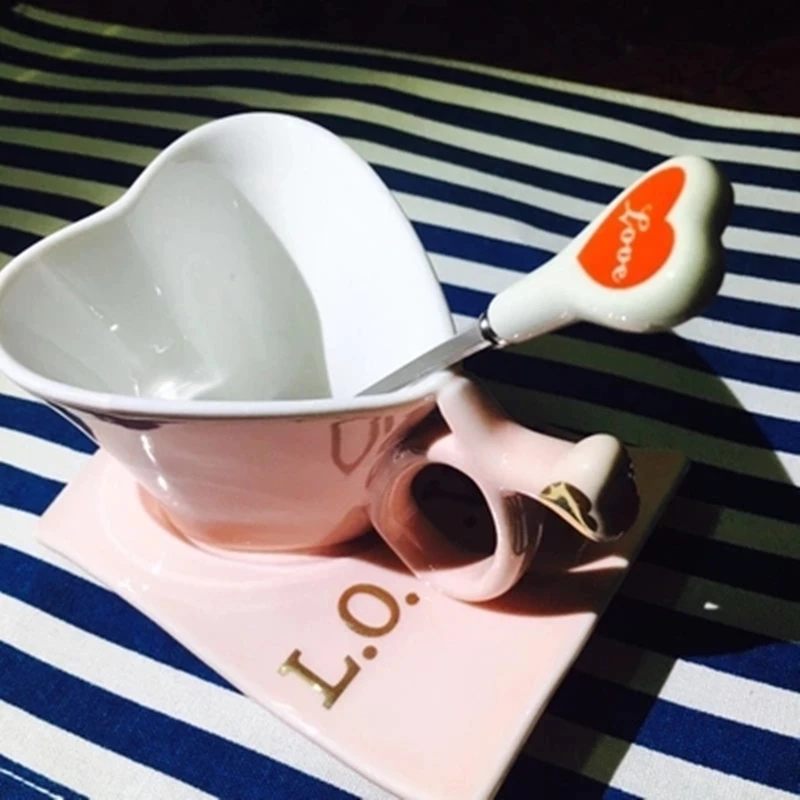 Product Name: VILEAD en forma de corazón amante taza de café de cerámica de moda leche taza con placa par mañana taza de té Oficina taza de agua regalo para niñas