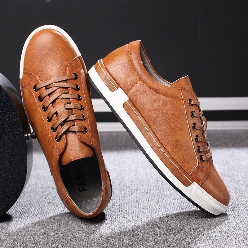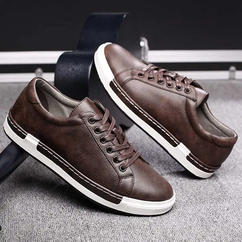 Product Name: Tendencia zapatos casuales Retro hombres zapatillas transpirables zapatos planos de cuero hombres zapatos vulcanizados al aire libre calzado de alta calidad tamaño 38 46