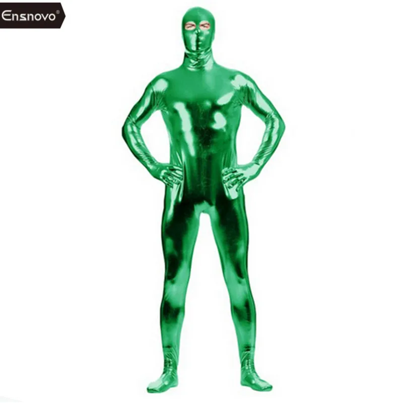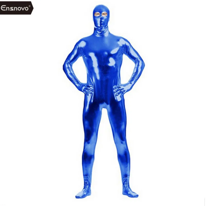 Product Name: Ennovo hombre traje de LICRA ojo abierto Spandex brillante metálico Zentai traje de Nylon cuerpo completo personalizado piel ojos abiertos traje
