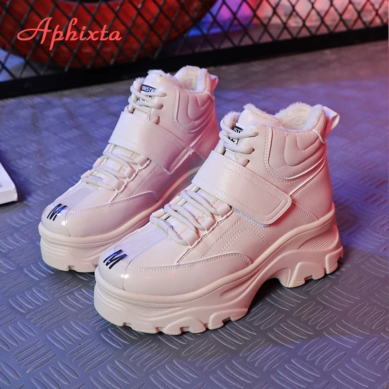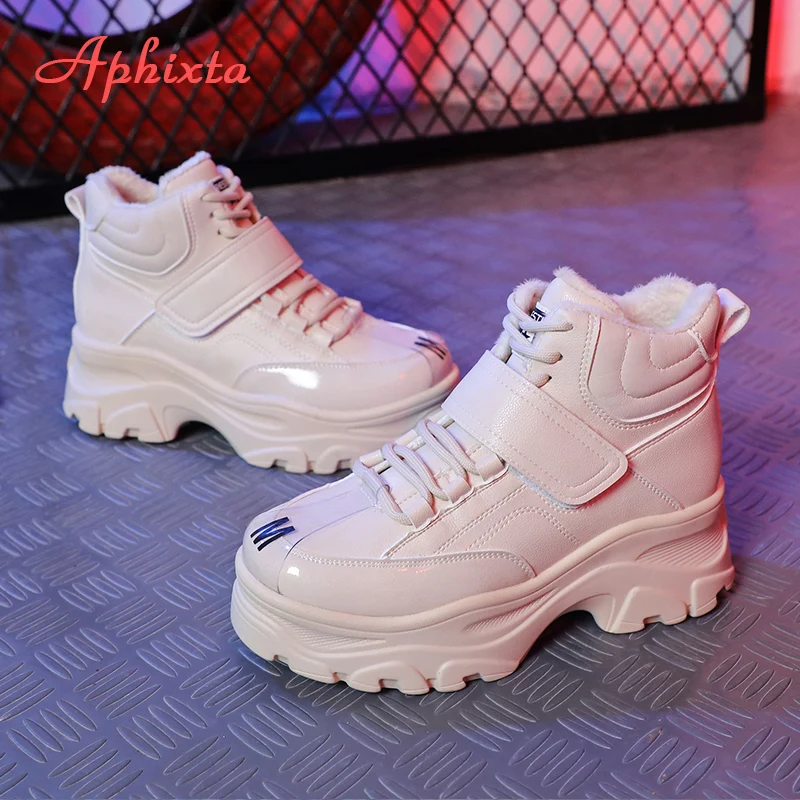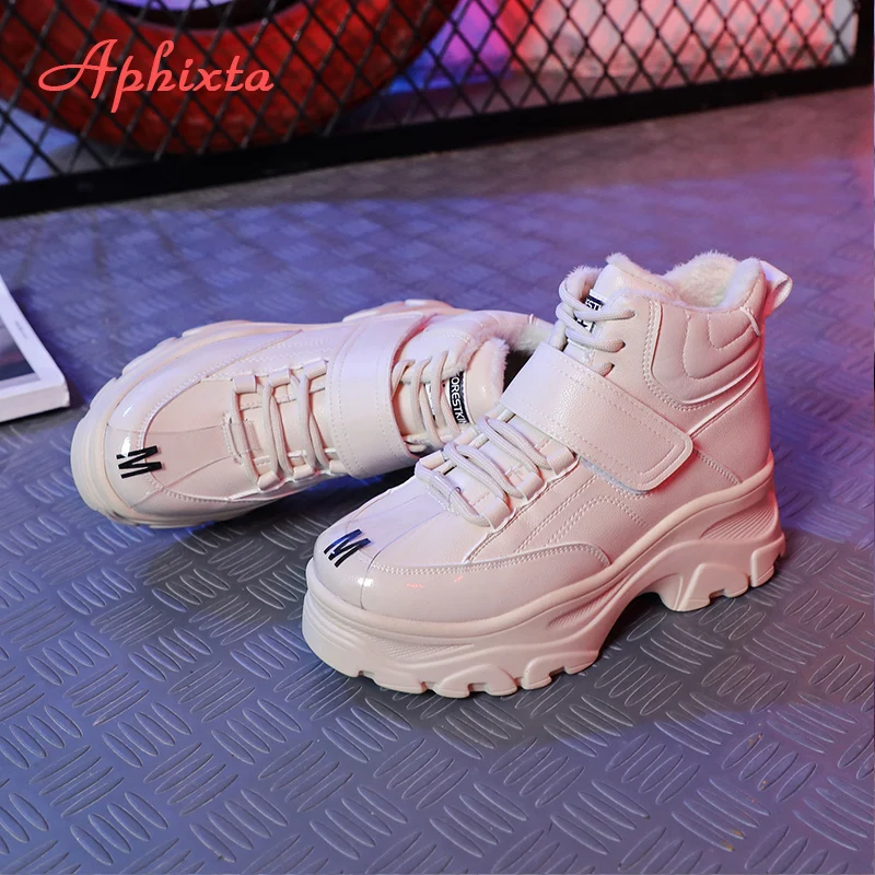 Special Offer Aphixta botas impermeables calientes zapatos de plataforma mujer Botines altura aumento botas suela gruesa gancho y bucle mujeres tamaño grande 41 Discount 42% Today!