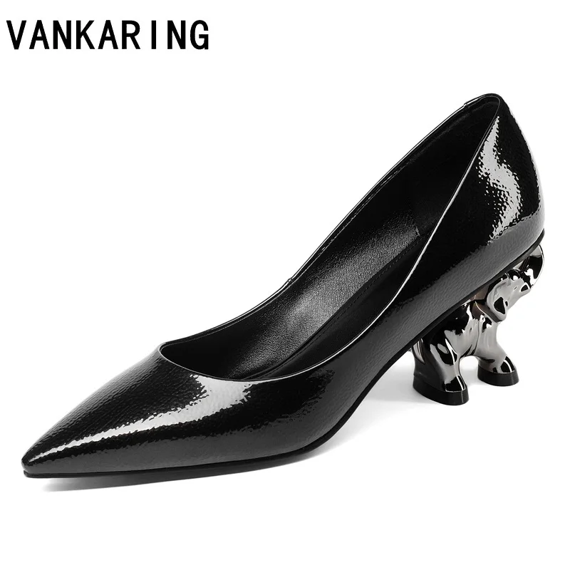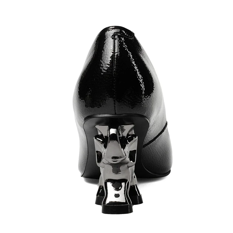 Product Name: Zapatos de marca mujer elefante escultura tacón zapatos de cuero tacones altos dama otoño verano zapatos puntiagudos Zapatos de vestir para fiesta femenina