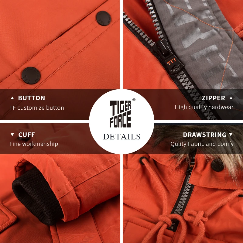Product Name: TIGER FORCE Parka chaqueta de invierno para hombre chaqueta con capucha resistente al agua chaqueta de nieve de esquí acolchado abrigo de hombre ruso extremadamente frío
