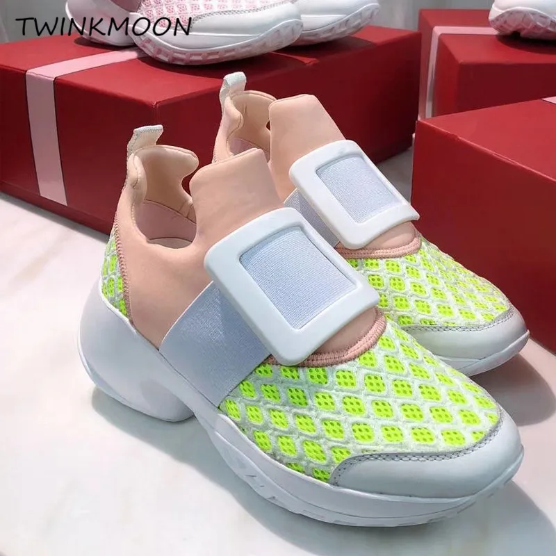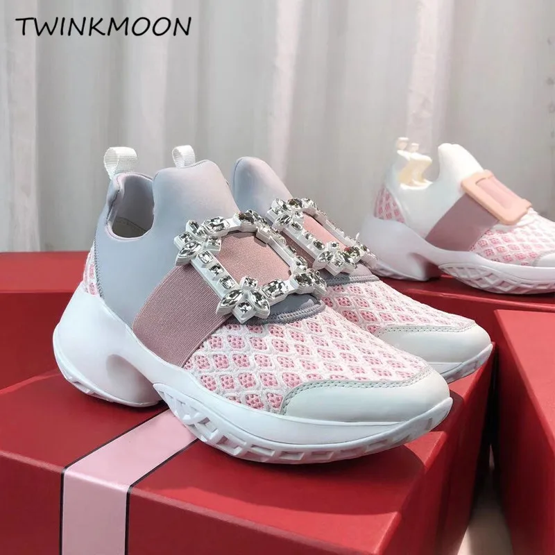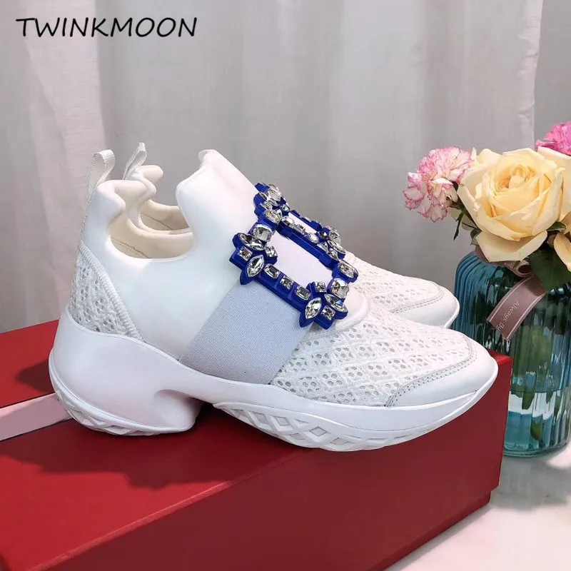 Special Offer Zapatillas de plataforma con hebilla de cristal, zapatillas de diseño de malla de aire, gruesas zapatillas de mujer gruesas, zapatos casuales vulcanizados 2019 Discount 0% Today!